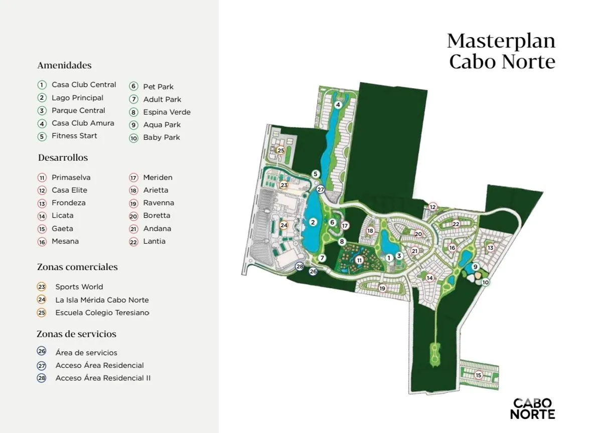 Respecto a las zonas de interés cercanas, Cabo Norte cuenta con una amplia gama de servicios y atracciones en sus alrededores. A pocos minutos de distancia, se encuentra el centro comercial La Isla Mérida, el cual cuenta con una gran variedad de tiendas, restaurantes y opciones de entretenimiento; el Colegio Teresiano a unos cuantos metros desde pre-escolar, primaria, secundaria y preparatoria.